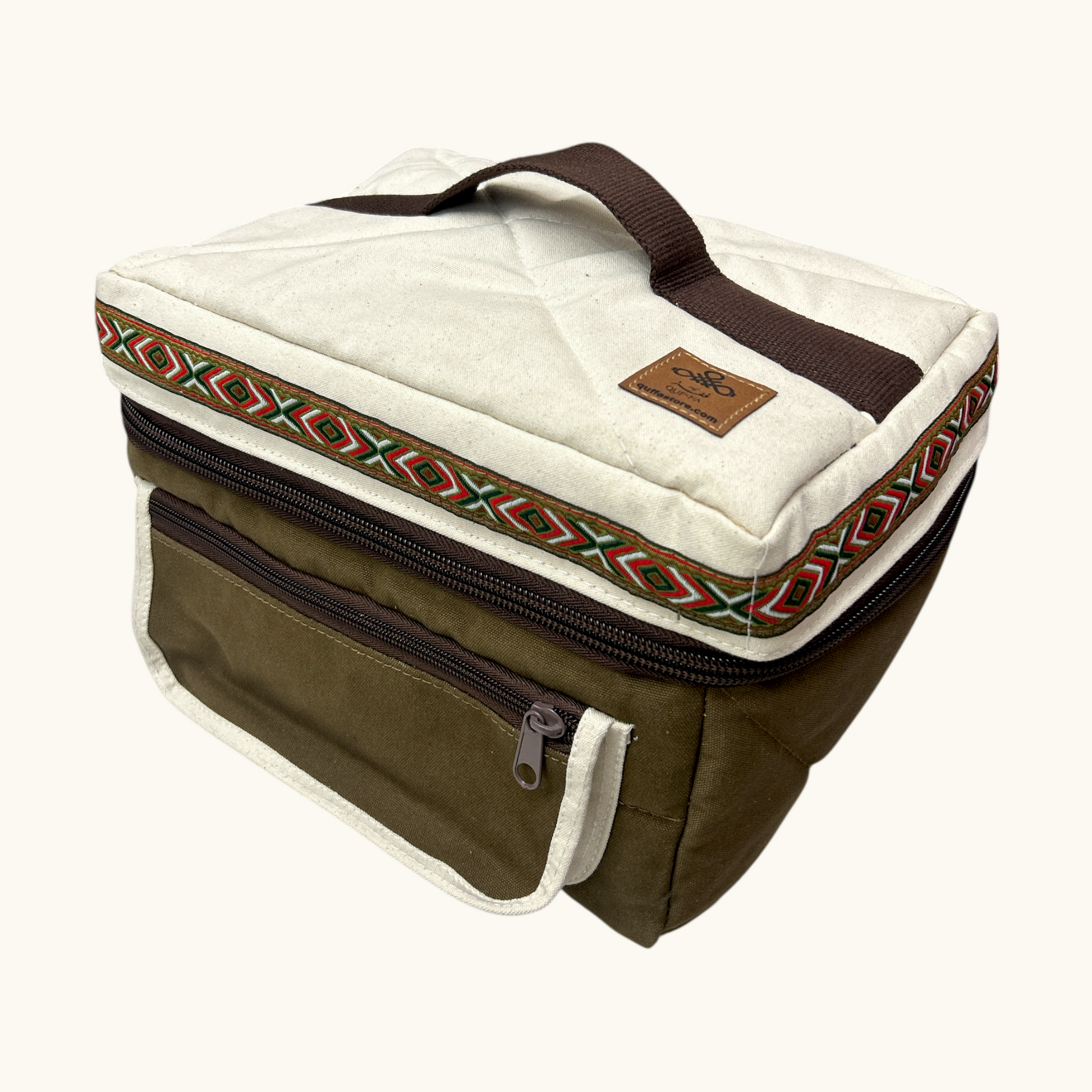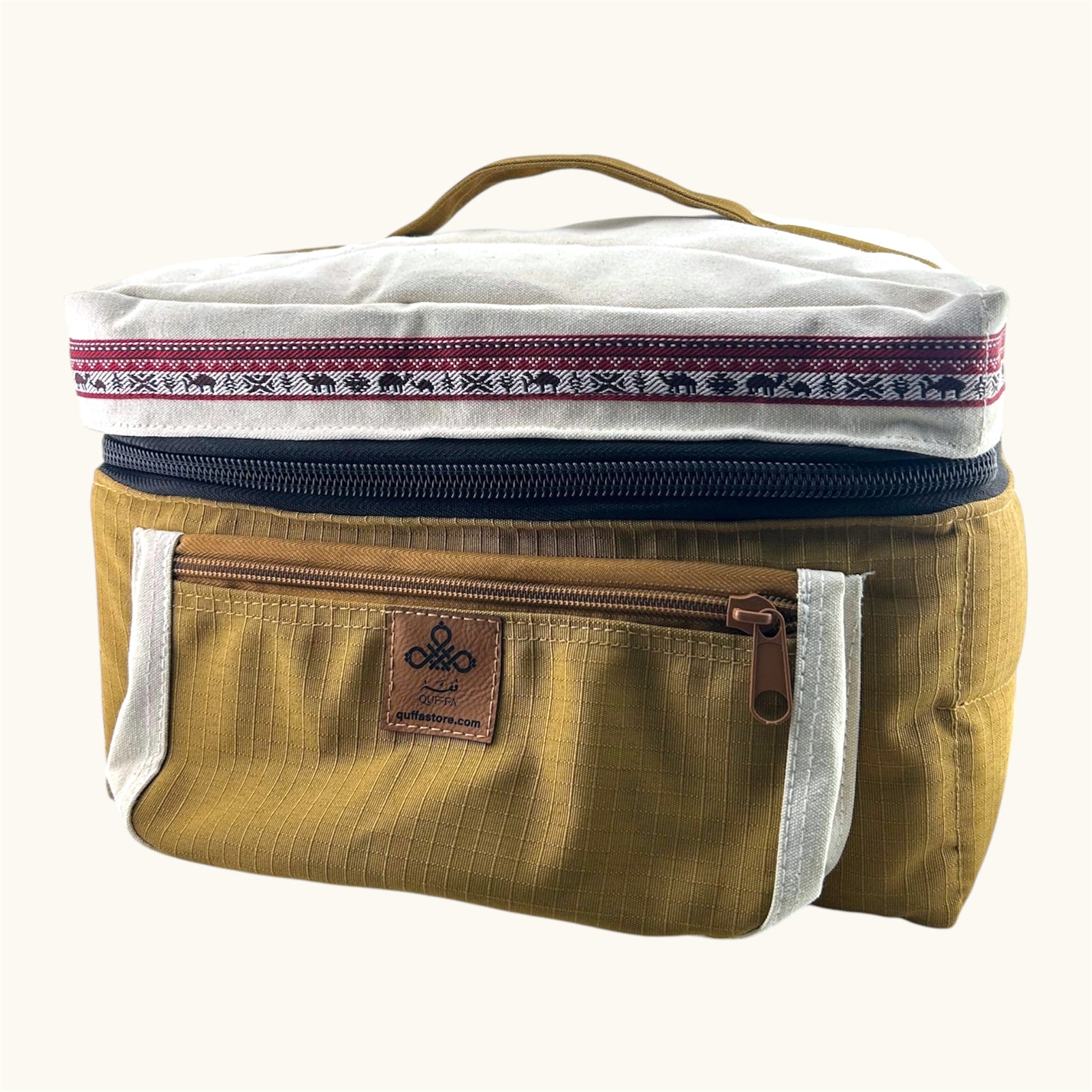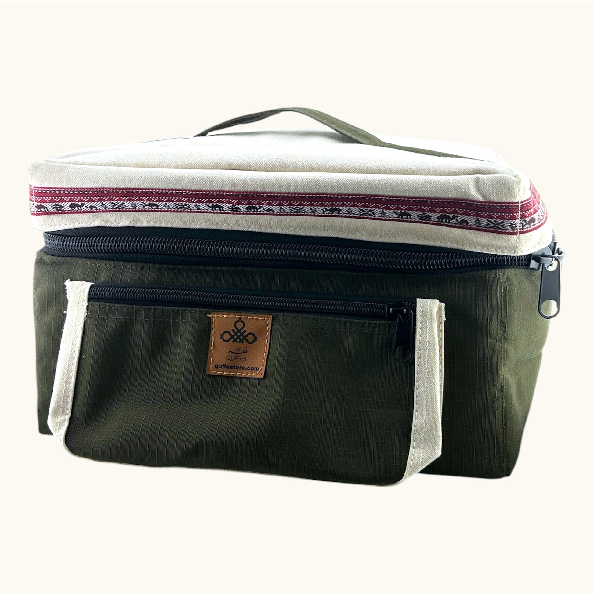 شنطة عزبه فاخره للرحلات بطول 34سم و عرض 25سم و ارتفاع 23 مصنوعه من مواد عالية الجوده واطار نقش نجدي دايري