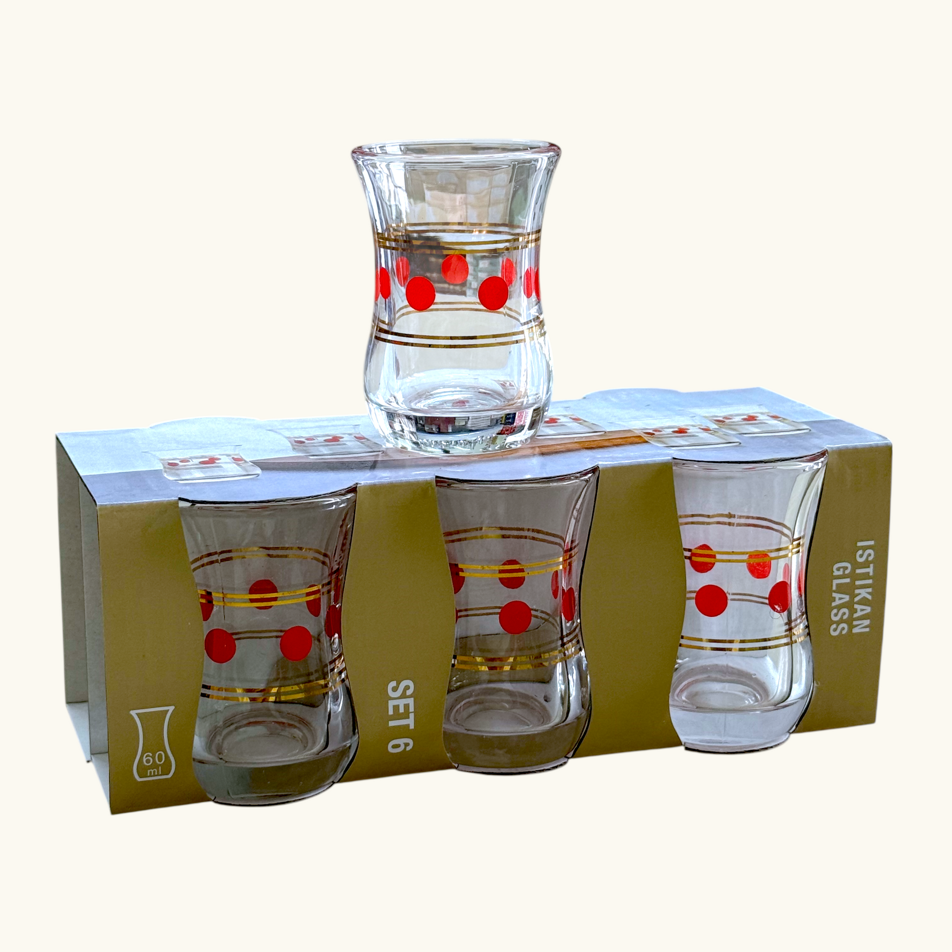 استمتع بتجربة شاي فاخرة مع إستكانات الشاي بالنقش التراثي وسعة ٦٠ ملي تأتي في عبوة تضم ٦قطع لتناسب جميع المناسبات